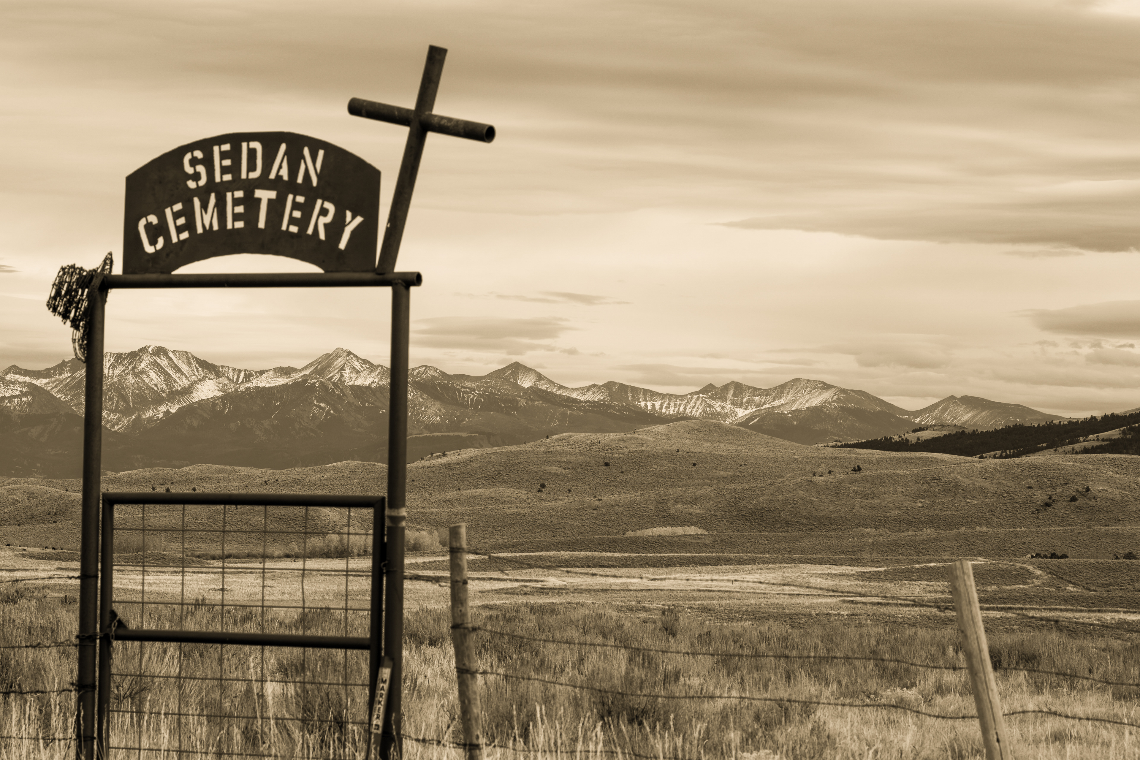 Sedan Montana is at the north end of Bozeman's Bridger range and is the remnants of one of the first area settlements. This spectacular cattle ranch country is still remote and wild despite the nearby influx of new wanna- be Montanans with plenty of money and not much idea of what it really means to be a multi generational Montanan. This shot of the Sedan cemetery reveals to me that -at least for now- some of the remote area's of southwest Montana remain mostly as they were 150 years ago. I hope they never change and the developers and the private equity whores infesting Bozeman find this area just too remote and inhospitable for golf and trophy homes. Maybe the lack of new headstones in the Sedan cemetery portends the future of this remote part of southwest Montana.